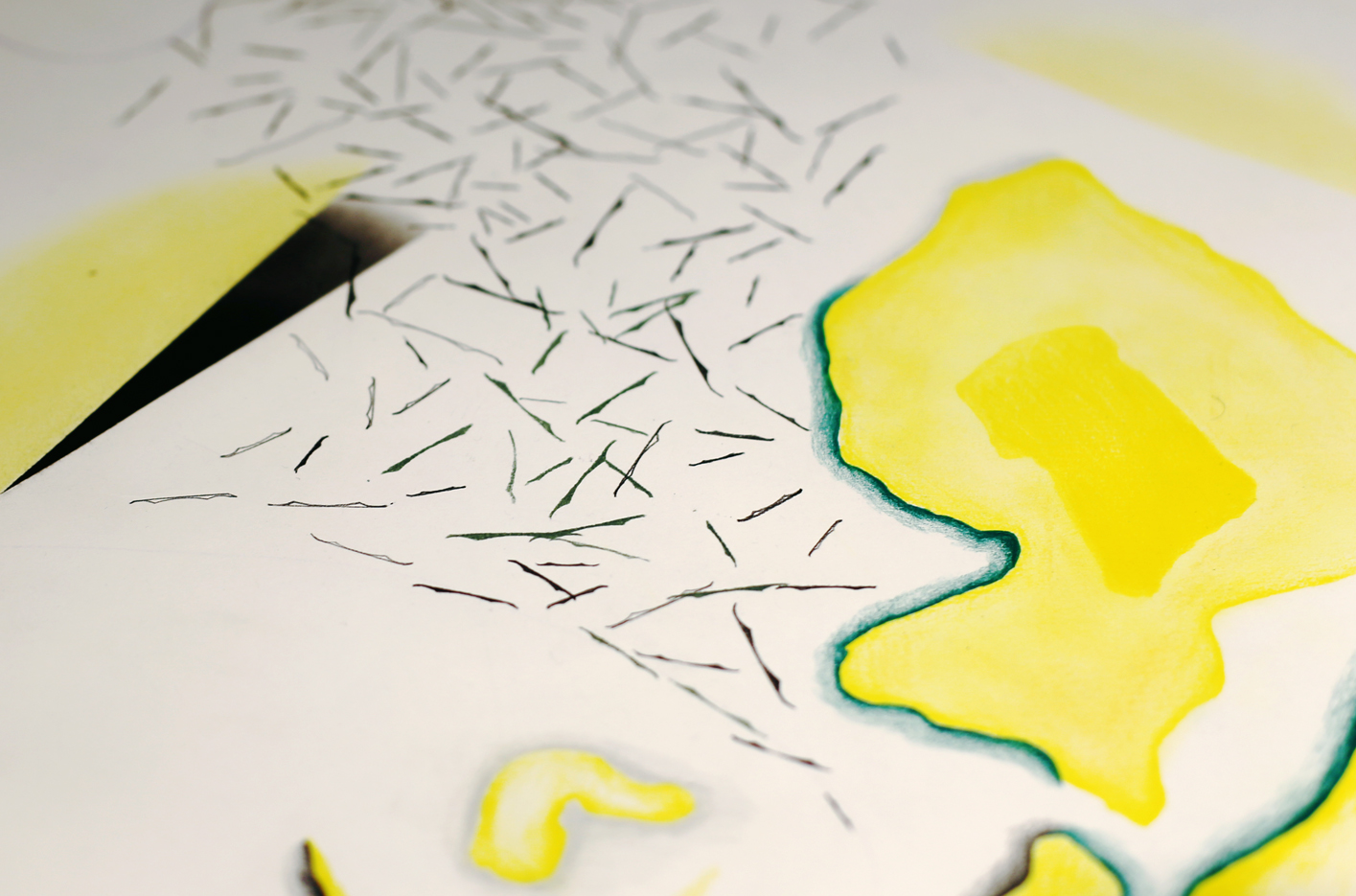 Il s’agit d’une improvisation autour de l’écriture de la géographie afin d’inclure à la carte les données qui lui sont habituellement refusées, d’inclure le tracé du chemin parcouru mais aussi et surtout le reste : ce que le marcheur y récolte, la blessure qui le fera ralentir, les champs de blés traversés, ce qu’il y pense, comment il y vit. C’est l’histoire d’un voyage dont les quatre principales étapes se suivent dans l’espace : la routine, l’accident, le repos puis la rencontre.